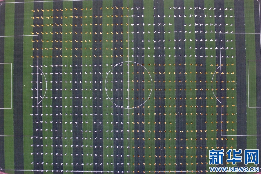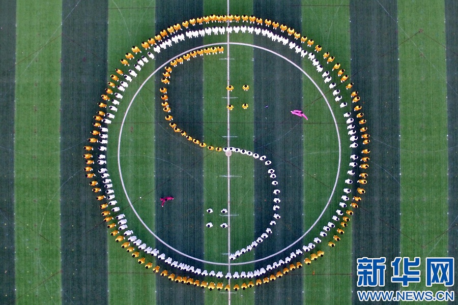 4月12日,河北省廣宗縣第一中學(xué)學(xué)生在練習(xí)太極拳。新華社發(fā) 陳雷攝 -