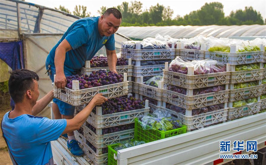 7月2日,河北省棗強縣唐林鎮(zhèn)邵府村村民將剛采摘的葡萄搬運到水果商的收購車上。近年來,河北省棗強縣在實施產(chǎn)業(yè)扶貧過程中,積極引導(dǎo)農(nóng)民調(diào)整農(nóng)業(yè)產(chǎn)業(yè)結(jié)構(gòu),因地制宜發(fā)展大棚葡萄種植,開辟出了一條脫貧創(chuàng)收新路徑。目前,該縣大棚葡萄種植面積已達5000余畝,收獲的葡萄暢銷京津冀市場,3000余貧困群眾借此脫貧。新華社記者李曉果攝