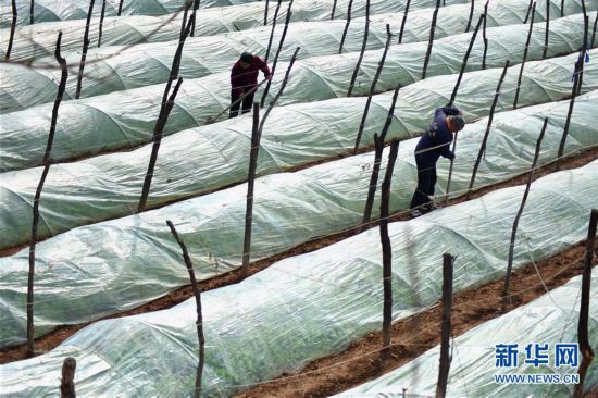 2月25日,山東省聊城市茌平縣賈寨鎮(zhèn)邢胡劉村的農(nóng)民在大棚里勞作。 春日時節(jié),人們忙于生產(chǎn)勞動,為新一年的豐收和美好生活打下基礎(chǔ)。 新華社發(fā)(趙玉國 攝)