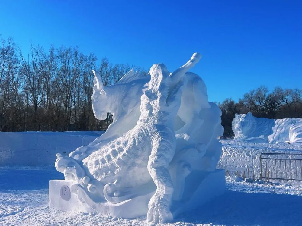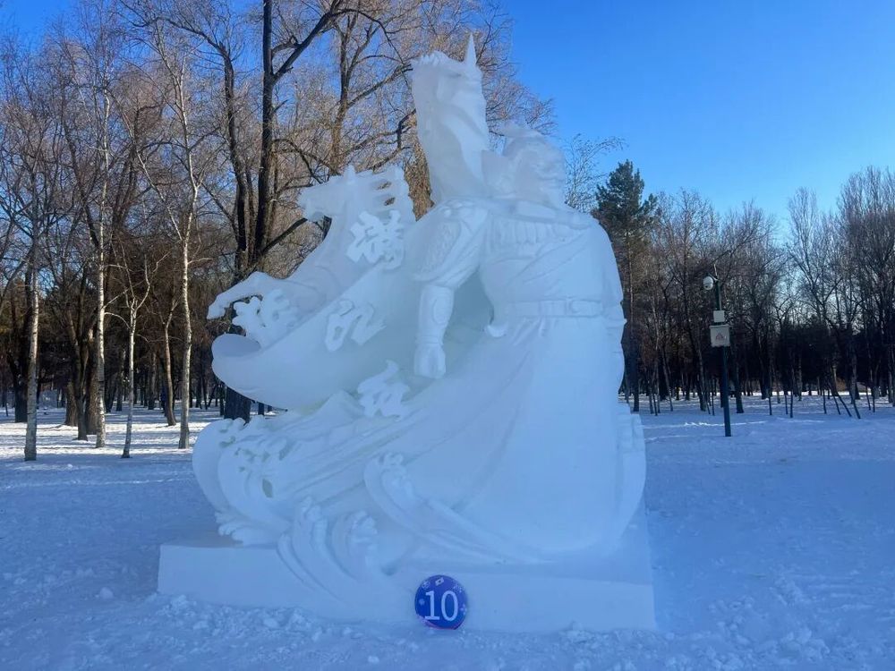 經(jīng)過4日的激烈角逐與專家的嚴(yán)謹(jǐn)評(píng)審,各大獎(jiǎng)項(xiàng)最終塵埃落定。其中,艾協(xié)津·冰雪雕塑聯(lián)隊(duì)《驚鴻一躍》、達(dá)斡爾族聯(lián)隊(duì)《同飲一江水》榮獲一等獎(jiǎng),大連代表隊(duì)《奶奶家的小貓咪》、長春寶地冰雪雕刻隊(duì)《瑞雪兆豐年》獲得二等獎(jiǎng),男兒當(dāng)自強(qiáng)隊(duì)《滿江紅》、長春冰之藝隊(duì)《琵琶行》榮獲三等獎(jiǎng)。