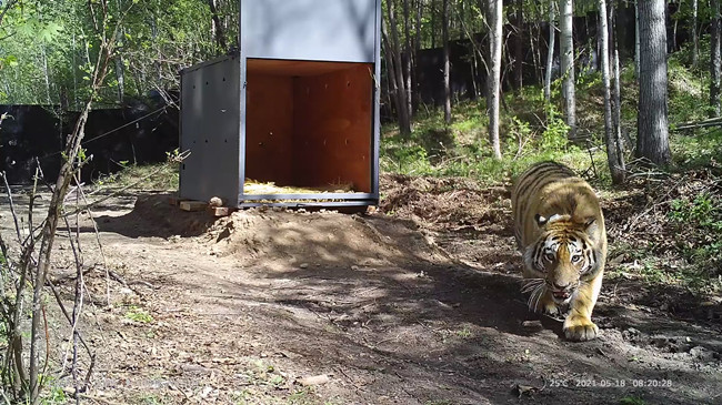 “我們通過‘完達(dá)山1號(hào)’花紋及DNA的溯源結(jié)果,找到它最有可能的來源地,并以100平方公里范圍進(jìn)行選擇。之后,根據(jù)之前對(duì)待選范圍的資源調(diào)查及棲息地評(píng)估,尋找有良好的森林生態(tài)環(huán)境、充足的獵物資源,最重要的是較少的人類活動(dòng)的地方,上面這些因素綜合考慮,最終確定了‘完達(dá)山1號(hào)’新的棲息地。”趙越說。