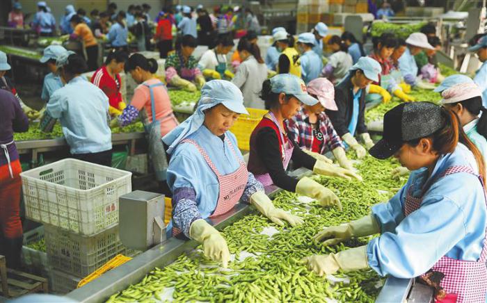 日前,昌江綠寶農(nóng)產(chǎn)品集配中心,工人們在清洗、篩選運往浙江省杭州市的20萬斤毛豆。據(jù)介紹,經(jīng)加工包裝后,每年約有4.7億斤農(nóng)產(chǎn)品從該集配中心銷往全國各地。