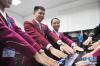 2月1日,寧儒(左二)、梁鶴(左三)在登機前進行儀容儀表檢查。新華社發(fā)(楚洪雨 攝) -