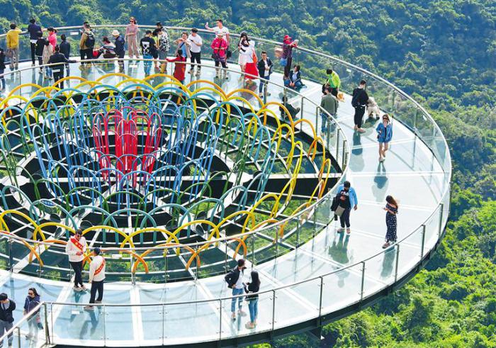 元旦小長假期間,游客在亞龍灣熱帶天堂森林旅游區(qū)全海景玻璃棧橋游覽。