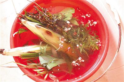 “我小時候洗龍水,母親會提前找來好幾種植物,其中主要有艾草,然后在端午節(jié)那天一早打來冰涼的井水浸泡,等浸泡到下午,水染上了草的墨綠色,便可以用來沖涼了!睒窎|黎族自治縣佛羅鎮(zhèn)年過七旬的居民吳申坤介紹,這些泡龍水的植物具有清熱、消炎、解毒、祛風的作用。