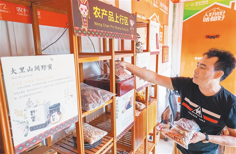近日,在陵水黎族自治縣本號(hào)鎮(zhèn)小妹村農(nóng)村淘寶店中,工作人員正在整理特色農(nóng)產(chǎn)品,準(zhǔn)備通過(guò)物流發(fā)往各地。