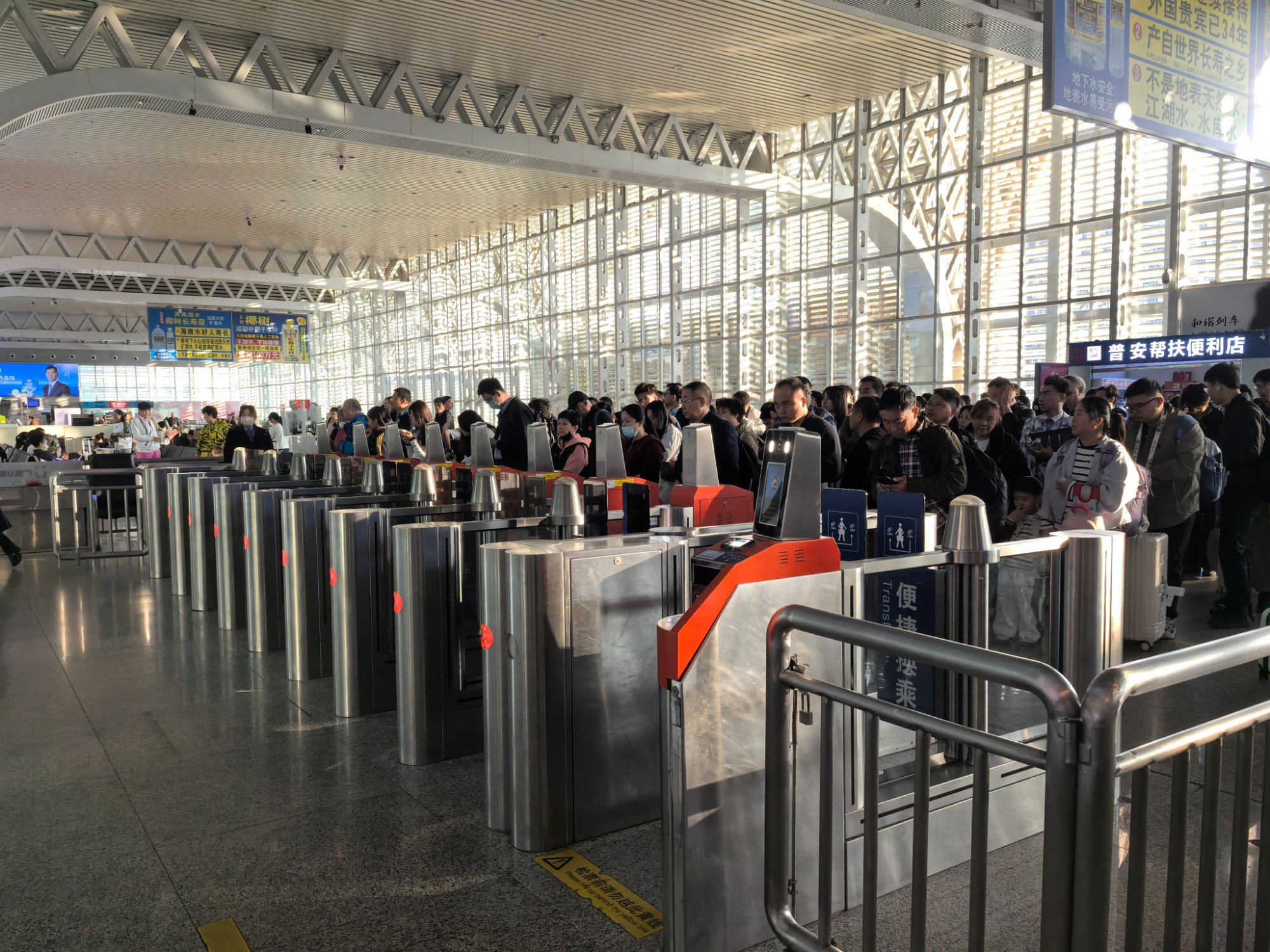 海口東站旅客等待檢票(央廣網(wǎng)發(fā) 吳翊溦 攝)