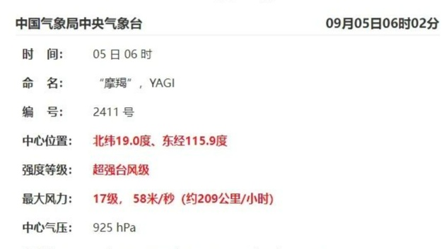 最新!超強(qiáng)臺風(fēng)“摩羯”將于9月6日下午到夜間在海南瓊海到廣東電白登陸