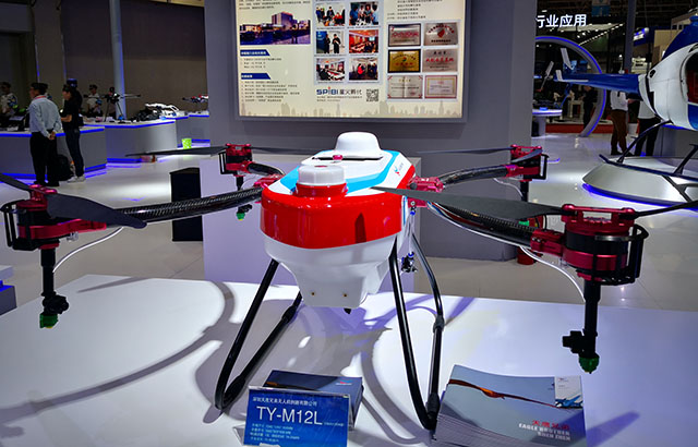天鷹兄弟集團應組委會邀請,攜最新自主研發(fā)的多旋翼植保無人機TY-M12L精彩亮相2019年中國·廊坊國際經濟貿易洽談會,受到政府領導及與會觀眾的高度關注,F場負責人毛海興介紹這款被稱為“長腦的打藥神器”藥箱容量為12升,續(xù)航時間是18-25分鐘,作業(yè)效率為70-90畝每小時;獨創(chuàng)C型機臂創(chuàng)新設計,一步式折疊收納,運輸更便捷;全機身模塊化設計,便于拆裝與維修,維護成本低;機身采用工業(yè)三防設計,在惡劣作業(yè)環(huán)境下也能正常運作;同時配備了智能化噴灑系統(tǒng),可針對不同作物及環(huán)境進行精準噴灑;支持全自主飛行控制及夜航作業(yè)飛行。
