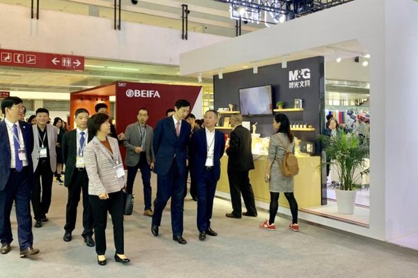 中國文教體育用品協(xié)會理事長易曉俐、中國國際展覽中心黨委書記林舜杰與晨光文具董事長陳湖文先生一同參觀了晨光展區(qū),并對晨光文具的技術(shù)創(chuàng)新和產(chǎn)品研發(fā)給予了高度評價。