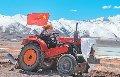 4月30日,村民開著拖拉機(jī)參加西藏那曲市尼瑪縣的春耕典禮。新華社記者 侯 捷攝