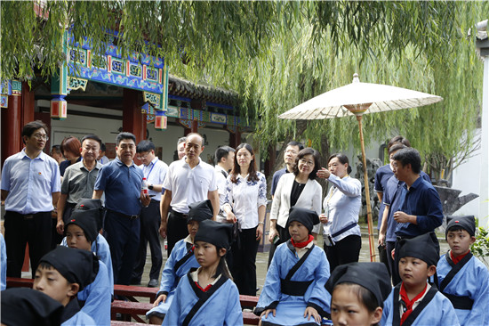 為貫徹《教育部等十一部門關(guān)于推進(jìn)中小學(xué)生研學(xué)旅行的意見》和《河南省教育廳等10部門關(guān)于推進(jìn)中小學(xué)生研學(xué)旅行的實(shí)施方案》,深入落實(shí)全省文化旅游大會(huì)精神,加快推進(jìn)中小學(xué)生黃河文化研學(xué)旅行工作,河南省文化和旅游廳、省教育廳研究決定,于7月24日在開封市召開 “河南省黃河文化研學(xué)旅行會(huì)議”。中國(guó)翰園碑林為此次大會(huì)的研學(xué)觀摩基地之一。河南省教育廳副廳長(zhǎng)毛杰、河南省文化和旅游廳副廳長(zhǎng)朱建偉和與會(huì)領(lǐng)導(dǎo)及嘉賓蒞臨中國(guó)翰園碑林參加本次觀摩活動(dòng)。