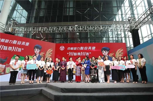 在啟動會現(xiàn)場,21個地級市的婦聯(lián)以及四川電視臺電商大主播欄目組的網(wǎng)紅們一起同臺競技,開展“巾幗助力脫貧奔康·川妹帶川貨”首場示范活動,為拓寬“川字號”產(chǎn)品的銷售渠道盡自己的一份力。