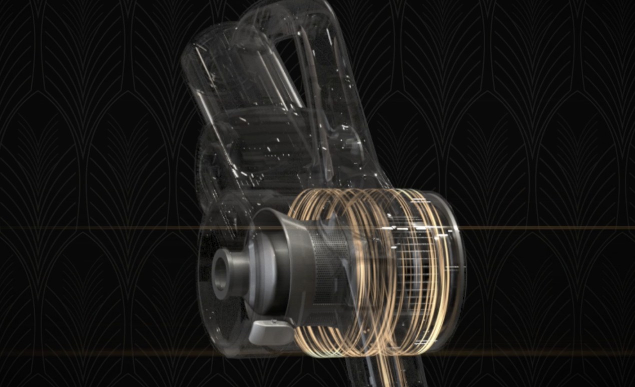 “橫筒式”設(shè)計,空氣從氣旋切線邊緣進入主機,意味著風阻大大減小,吸力損耗更少。而常規(guī)的手持吸塵器,氣流從正面沖撞進入,風道不通暢,風阻大,風量損耗大。