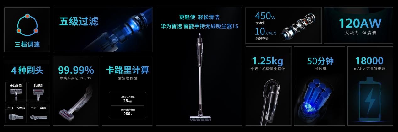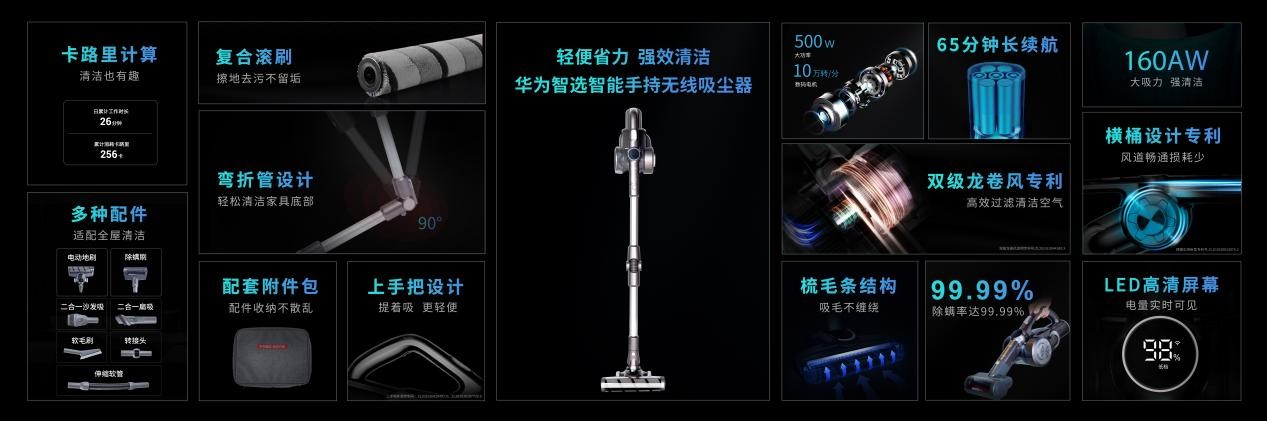 此次發(fā)布會新品上華為智選智能手持無線吸塵器,使用起來更順手,手腕承力小,即使長時間使用也不會感到手累,而且合理的結(jié)構(gòu)設(shè)計使得吸力衰減慢,續(xù)航時間長,或許能做到使你的生活更輕松一點。