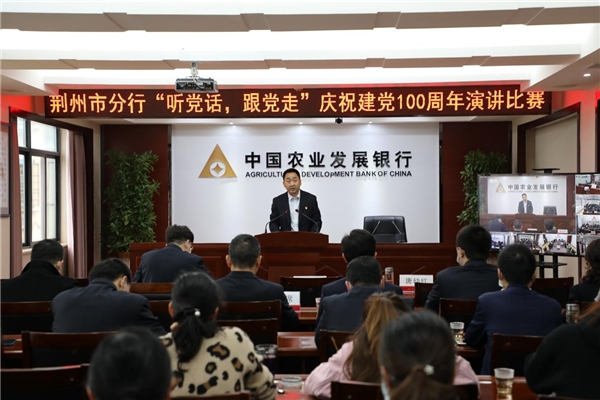 百年大黨,征途如虹。為隆重慶祝中國共產黨百年華誕,深入推進黨史學習教育,引導黨員干部學史明理、學史增信、學史崇德、學史力行,3月31日,農發(fā)行荊州市分行舉辦了“聽黨話、跟黨走”慶祝建黨100周年演講比賽,來自全市7個支行黨支部和2個機關黨支部共10名選手參賽。