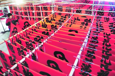 羊年春節(jié)臨近,聊城市高唐縣的100多個春聯(lián)加工戶迎來了加工、銷售的最火爆季節(jié),工人們正加緊趕制、批發(fā)春聯(lián),一派紅紅火火的繁忙景象。高唐縣是中國書畫藝術之鄉(xiāng),該縣手工書寫、印制的大紅春聯(lián)因字體多樣,制作精致,不易褪色,深受各地客商青睞。圖為高唐縣匯鑫街道谷官屯村村民正在印刷、晾曬春聯(lián)。張振祥 張波 曲東芳 攝影報道