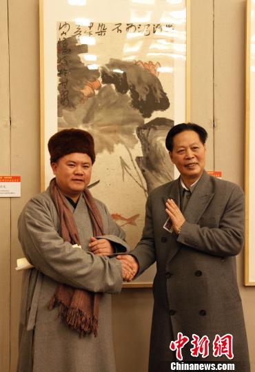 2月7日,“中國書畫名家禪意作品邀請展”在北京全國政協(xié)禮堂開展,共展出包括全國政協(xié)委員、中國法治詩書畫院院長汪國新(右)等多位書畫名家的120多幅作品
