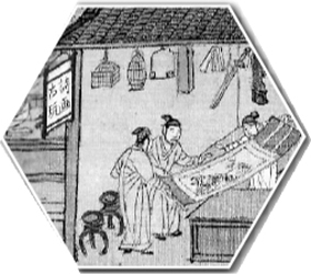 《賣(mài)書(shū)畫(huà)的店肆》《清明上河圖》局部 仇英 圖片選自《風(fēng)雅之好——明代嘉萬(wàn)年間的書(shū)畫(huà)消費(fèi)》