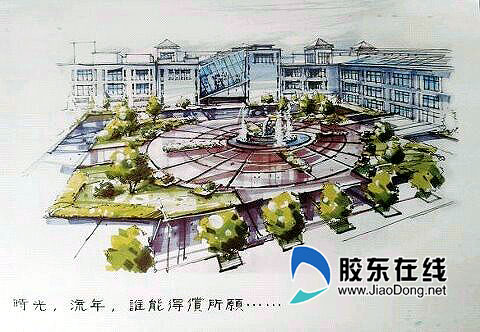 手繪煙大校園美景之廣場(圖片由網(wǎng)友“逸陽”提供)