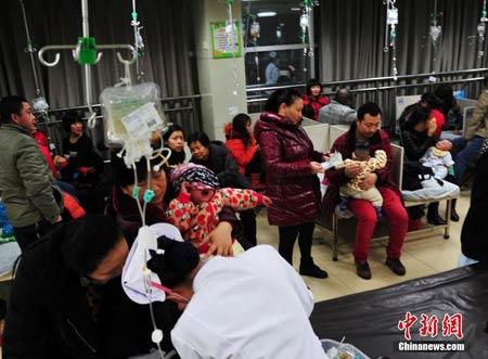 2月24日,河北省兒童醫(yī)院大廳內(nèi)人頭攢動,前來就診的兒童絡繹不絕,走廊里都擠滿了等待就診和輸液的兒童。該省兒童醫(yī)院急診科主任張中馥表示:“開春之后天氣好轉(zhuǎn),呼吸道疾病本因會下降,但最近幾天受霧霾影響,呼吸道患兒明顯增多,以肺炎,上呼吸道炎癥為主!敝行律绨l(fā)翟羽佳 攝