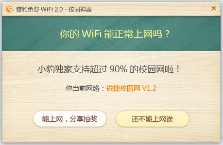 據(jù)悉,獵豹免費WiFi2.0-校園神器對170多所校園網(wǎng)絡(luò)環(huán)境進行了現(xiàn)場測試,解決銳捷、天翼、netkeeper系列(包括netkeeper、閃訊、e信)、星空極速、inode 等主流校園網(wǎng)客戶端不能分享WiFi上網(wǎng)的難題。