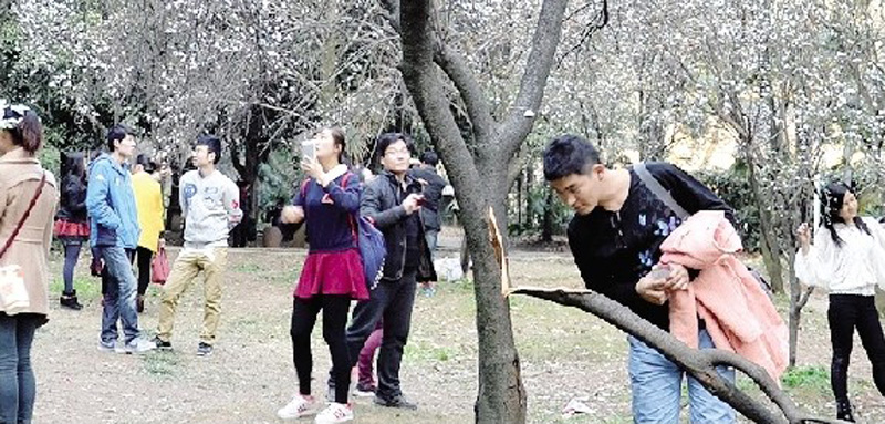 央廣網(wǎng)河南分網(wǎng)消息 據(jù)楚天都市報(bào)報(bào)道:陽(yáng)春三月,又到武漢大學(xué)櫻花盛開之際。昨日,一些慕名而來(lái)的游客爭(zhēng)先恐后來(lái)到珞珈山賞櫻,不文明行為并不少見(jiàn),一些游客隨意采摘櫻花,攀爬拍照,櫻花節(jié)變成了“櫻花劫”。