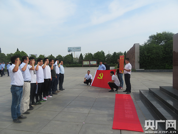 央廣網(wǎng)河南分網(wǎng)6月29日消息 在楊靖宇將軍雕像前,項(xiàng)目老黨員邊洪偉帶領(lǐng)全體黨員舉起右手,面對(duì)黨旗莊嚴(yán)誓:“我自愿加入中國(guó)共產(chǎn)黨,擁護(hù)黨的綱領(lǐng),遵守黨的章程,屨行黨員義務(wù),執(zhí)行黨的決定,嚴(yán)守黨的紀(jì)律,保守黨的秘密,對(duì)黨忠誠(chéng),積極工作,為共產(chǎn)主義奮斗終身,隨時(shí)準(zhǔn)備為黨和人民犧牲一切,永不叛黨。”
