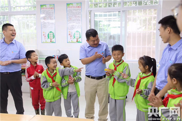 項(xiàng)目同事與新范小學(xué)孩子們做游戲(央廣網(wǎng)發(fā) 通訊員 雷然供圖)