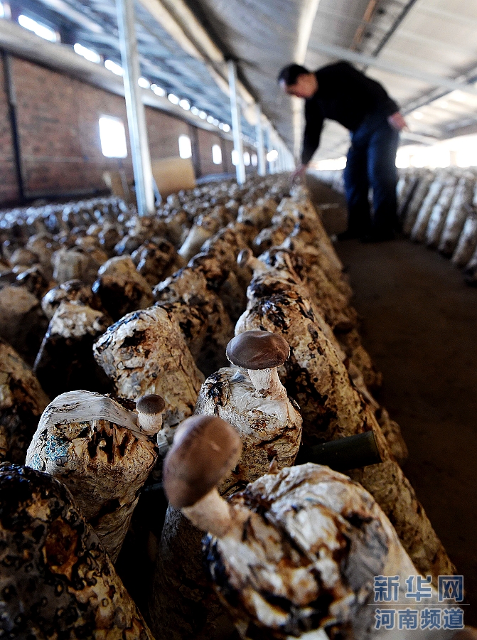 2月10日,農(nóng)戶在光伏發(fā)電農(nóng)業(yè)大棚內(nèi)查看食用菌的長勢。