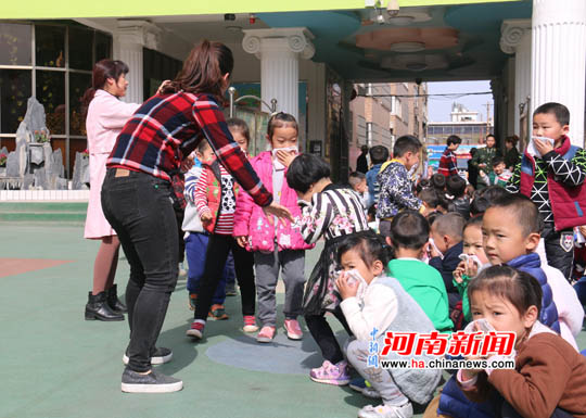 洛陽西工600名幼兒現(xiàn)場體驗火場逃生 張左宏/攝