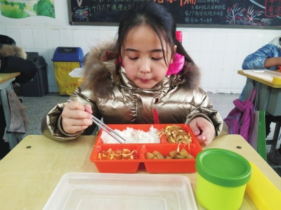 “今天是臘八,我竟然在學(xué)校喝到了臘八粥,飯菜很可口,我吃得飽飽的!”三(一)班的陳富豪飯后說(shuō)。