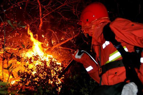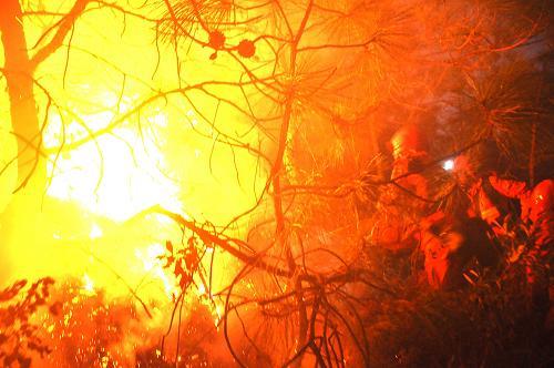 武警涼山森林支隊官兵在奮力撲火。新華社發(fā)(程雪力攝)