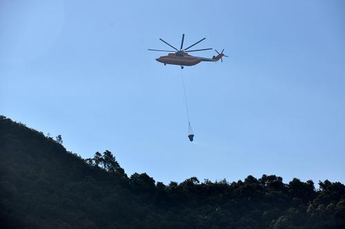 2月16直升機赴火場實施吊桶滅火作業(yè)。新華社發(fā)(程雪力攝)
