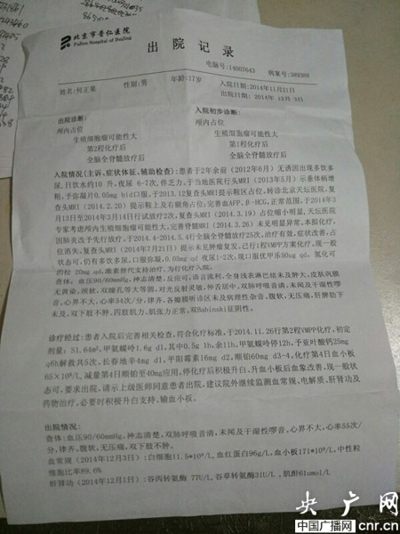 何文說,本來這次帶孩子回家是要給他辦理一個身份證,待元旦過后再去北京做下一步的化療的。