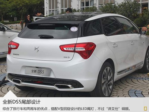 全新DS5獨(dú)特的尾廂造型綜合了旅行車和兩廂車的優(yōu)點(diǎn),搭配V型回旋設(shè)計的LED尾燈、精巧的睿黑色擾流板以及嵌入后保險杠內(nèi)的賽車式扁平鍍鉻雙排氣管,視覺感受更加整體。采用鏡面鉆石切割技術(shù)的雙叉式運(yùn)動輪轂,不僅提升了外觀的整體品質(zhì)感,也為全新DS5添加了更多Coupe跑車基因。