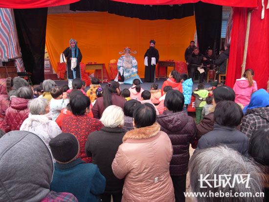 這個鄉(xiāng)北豆村的業(yè)余河北梆子劇團是由農(nóng)民組成的“莊戶劇團”,有演職人員40多人,不但服裝、樂器、道具俱全,演出時還能給每出戲配上“電子屏字幕”,能接連演出《大登殿》、《轅門斬子》、《賣妙郎》及聯(lián)本《貍貓換太子》等20多場傳統(tǒng)大戲。今年春節(jié)前迎著馬年演了3天,春節(jié)后從正月初六開始又連續(xù)演出《大登殿、算糧》、《賣妙郎》、《貍貓換太子》等傳統(tǒng)劇目,使這一帶的農(nóng)民大飽眼福。劉南召什、鐵匠莊、合立村(歷史上稱為三南召什)30多名戲劇愛好者組建的“合立業(yè)余河北梆子劇團”,也從正月初六開始唱起了《大登殿》、《陳三兩》、《三娘教子》等傳統(tǒng)劇目,引來周邊十里八鄉(xiāng)的群眾前來觀賞。皇甫、西王莊、張法臺的戲劇愛好者,也都歡聚在一起,開展京劇、評劇、河北梆子演唱和聯(lián)歡活動,給馬年春節(jié)帶來了歡樂。