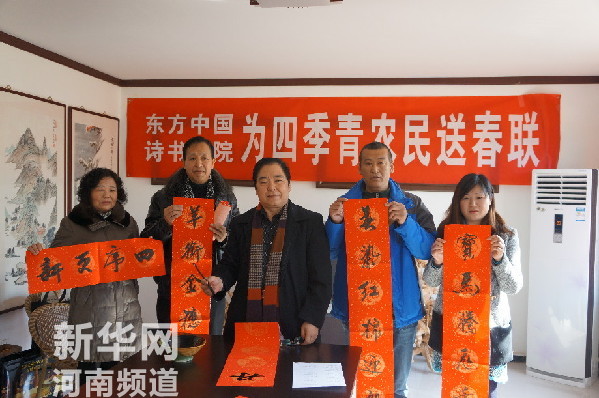 央廣網(wǎng)河南分網(wǎng)消息 進村給農民寫春聯(lián),不難。但33年的堅守,便難能可貴了。2月8日,河南籍著名詩人、書法家劉迅甫,帶領他的書法家團隊,為北京市海淀區(qū)四季青鎮(zhèn)東冉村的村民獻上了數(shù)百幅春聯(lián)。自1982年為中原家鄉(xiāng)父老寫對聯(lián)算起,他居沈丘,住鄭州,棲北京,時光荏苒三十余載,身份雖變,但這個堅持卻從未改變。