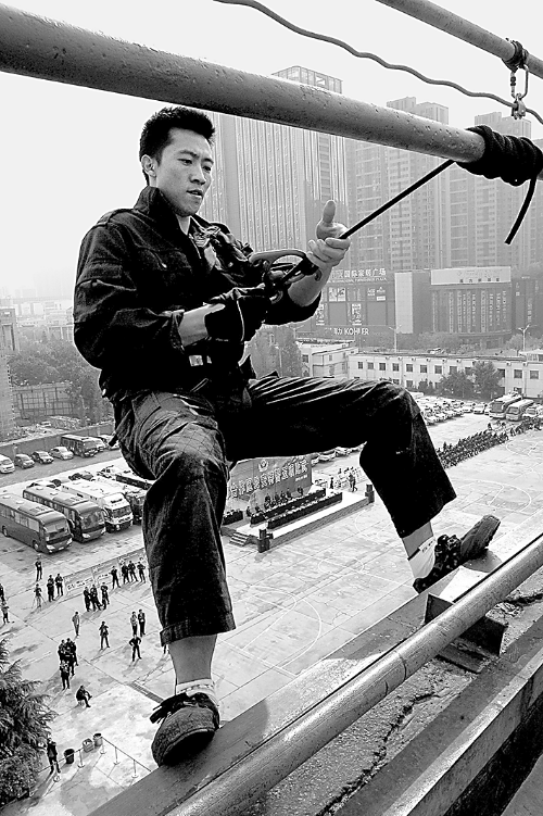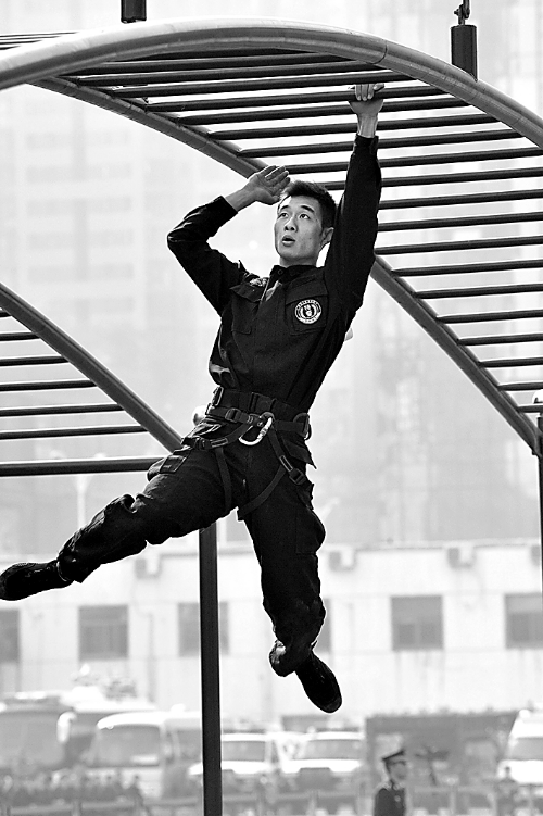 10月18日至19日,來(lái)自河南、江西、湖南和湖北的4支公安特警隊(duì)72名精英隊(duì)員在鄭州進(jìn)行大比武。(劉書(shū)亭 攝)