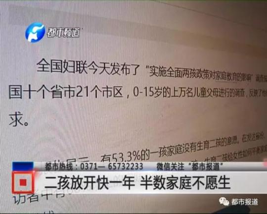 根據(jù)全國婦聯(lián)的調(diào)查報告,全國50%以上的一孩家庭沒有生育二孩的意愿,而在發(fā)達(dá)省份、城市地區(qū)、這個比例達(dá)到了60%.其實(shí)我們走訪鄭州街頭,生育二孩的積極性,真的沒有那么高漲。