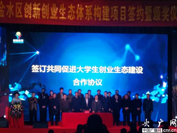 央廣網(wǎng)河南分網(wǎng)12月24日消息 (本網(wǎng)特別報(bào)道組)12月22日上午,金水區(qū)創(chuàng)新創(chuàng)業(yè)生態(tài)體系構(gòu)建項(xiàng)目簽約暨頒獎(jiǎng)儀式在儉學(xué)街金水區(qū)大學(xué)生創(chuàng)業(yè)園大禮堂隆重舉行,這是繼2015年金水區(qū)舉行的第三次創(chuàng)新創(chuàng)業(yè)大賽。