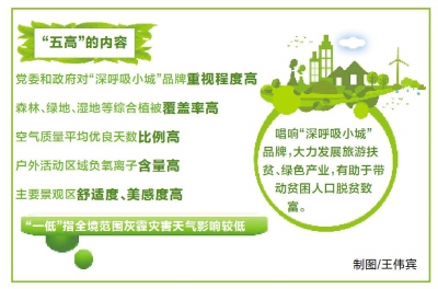 中國氣候變化專家委員會(huì)主任劉燕華在接受采訪時(shí)指出,隨著人們健康觀念的提升和旅游業(yè)的發(fā)展,“深呼吸小城”品牌有助于發(fā)揮綠色品牌效應(yīng),助推“綠水青山”轉(zhuǎn)化為“金山銀山”。他說,比如河南入選“全國百佳深呼吸小城”名單的7個(gè)縣市,除林州市外,其他6個(gè)縣都是國家級(jí)貧困縣。這些縣唱響“深呼吸小城”品牌,大力發(fā)展旅游扶貧、綠色產(chǎn)業(yè),有助于帶動(dòng)貧困人口脫貧致富。
