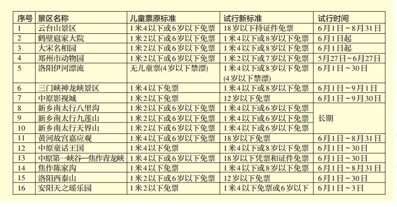 河南16家景區(qū)試行兒童票收費(fèi)新標(biāo)準(zhǔn)