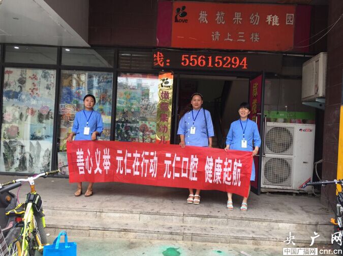 央廣網(wǎng)河南分網(wǎng)消息 2016年7月6日,鄭州市二七區(qū)元仁口腔門診部4名醫(yī)護人員,驅(qū)車來到橄欖果幼兒園,為橄欖果幼兒園的學(xué)生義診,受到小朋友們的熱烈歡迎。