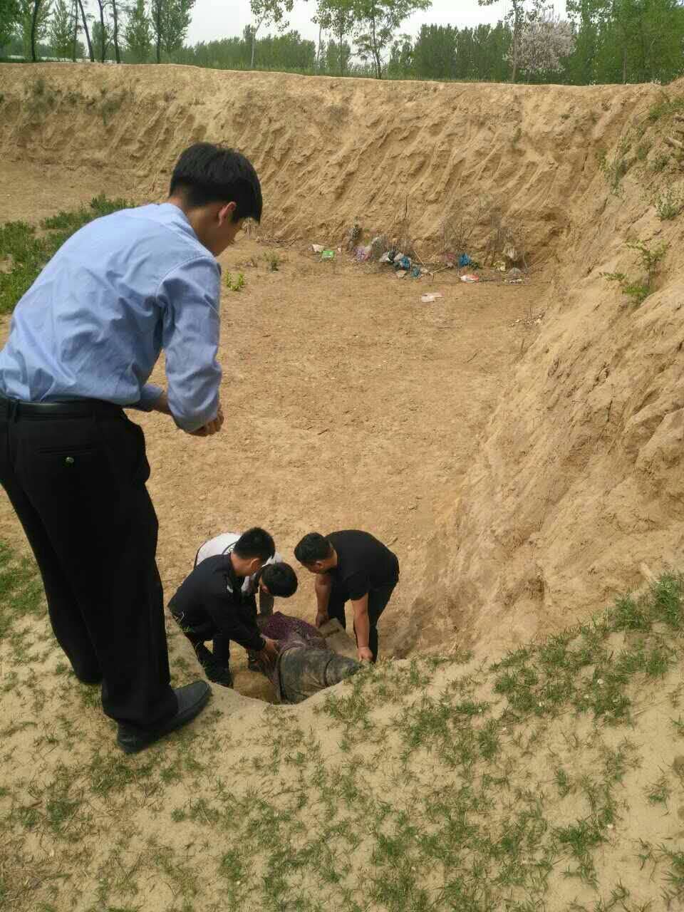 4月20日12時(shí)34分,蘭考縣公安局孟寨派出所接到熱心群眾報(bào)警稱(chēng),在轄區(qū)孫營(yíng)村有一個(gè)老大娘躺在一個(gè)大坑坑底。接到報(bào)警后,指導(dǎo)員張慶中迅速帶領(lǐng)民警和隊(duì)員趕到現(xiàn)場(chǎng),發(fā)現(xiàn)這位老大娘七十歲左右,躺在一個(gè)廢棄的土坑中,昏迷不醒。附近群眾告訴民警說(shuō),已經(jīng)在坑里躺了將近一個(gè)小時(shí)了。民警立即跳進(jìn)坑中將老人扶出進(jìn)行救助,給老大娘端來(lái)熱水和食物,但當(dāng)民警詢(xún)問(wèn)老大娘家在何處、家里有什么人時(shí),老大娘回答前言不搭后語(yǔ),民警未能從其言語(yǔ)中判斷出其名字、住址。