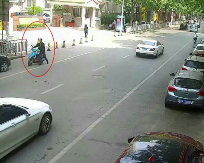 辦案民警告訴記者,上午10時30分許,他們在鄭州市經(jīng)八路上的某家屬院內(nèi),成功抓獲一個盜竊電動車團伙后,正準備帶涉案人員回辦案單位時,一名黑衣男子突然向他求助,希望他能幫忙推一下電動車。當時,他也沒多想,案子也已經(jīng)辦完,又是力所能及,便立即上前幫忙。