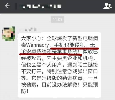 比特幣勒索病毒“想哭”爆發(fā)后,關于手機會感染此病毒的傳聞此起彼伏。各種信息在社交網(wǎng)絡平臺大肆傳播,有傳言稱,“全球爆發(fā)了新型的電腦病毒‘想哭’,手機也會被侵入,無論是安卓系統(tǒng)還是蘋果系統(tǒng)!”同時還稱,“這是升級版的勒索病毒,一旦被勒索,目前沒有辦法解救,只能預防!”