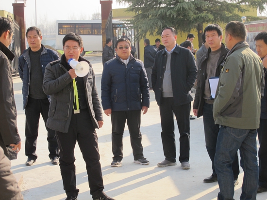 圖片說明:2016年12月7日,上蔡縣省市派40余名駐村第一書記到高白玉村參觀學(xué)習(xí),圖為陳召起為大家講解脫貧攻堅(jiān)計(jì)劃