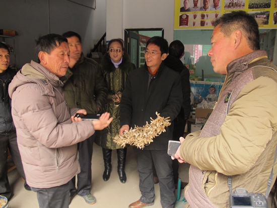 圖片說明:陳召起到劉飛種植合作社的葡萄園調(diào)研并幫劉飛出主意