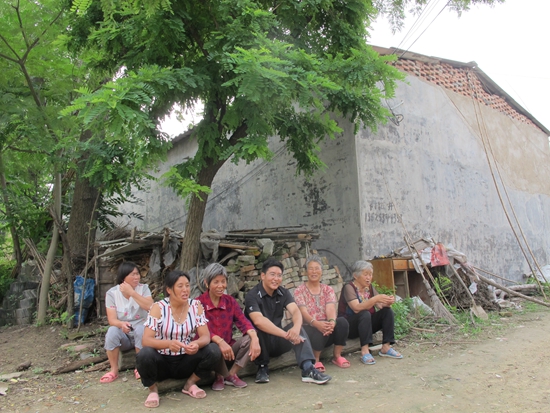 7月11日臨近中午時(shí)分,河南上蔡縣五龍鎮(zhèn)高白玉村葉莊自然村街道旁的一棵大合歡樹下,兩位村干部模樣的人正在與幾位村民高興地坐著聊天……
